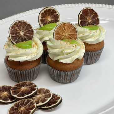 Our vanilla cake with our special blend of fall spices & a cream cheese frosting center finished with a italian meringue buttercream